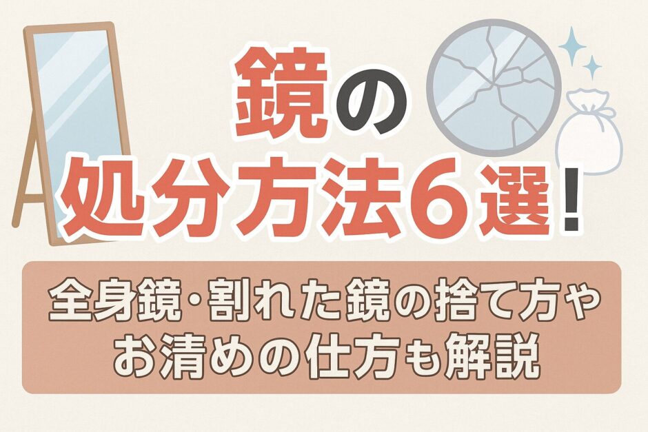 鏡の処分には、自治体のゴミ収集を利用する基本的な方法から不用品回収業者への依頼など6つの選択肢があり、あなたの状況に合った最適な方法を選べます。